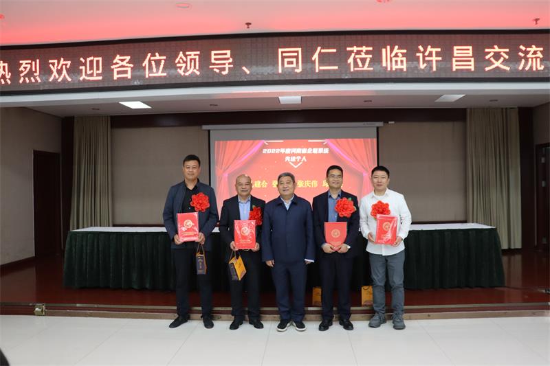 會上還特邀省企聯(lián)副會長田富軍為許昌企協(xié)4位獲得2022年度河南省企聯(lián)系統(tǒng)的先進個人進行頒獎,他們分別是:許昌市企協(xié)副會長、河南栢毅醫(yī)用輔料有限公司董事長孔建合、許昌市企協(xié)執(zhí)行會長、河南湖雪食品有限公司總經(jīng)理張建濤、許昌市企業(yè)家協(xié)會公益導師張偉、河南金諾混凝土有限公司總經(jīng)理邱文會。