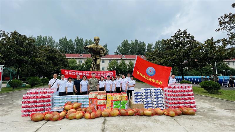 慰問(wèn)活動(dòng)中,企協(xié)先后到兩支駐許部隊(duì)開(kāi)展“八一”慰問(wèn)活動(dòng),感謝部隊(duì)官兵在為第二故鄉(xiāng)的經(jīng)濟(jì)發(fā)展中做出的重要貢獻(xiàn) ,并為部隊(duì)官兵們送上了消暑降溫的慰問(wèn)品,部隊(duì)首長(zhǎng)親切接見(jiàn)了企業(yè)家并進(jìn)行了座談交流,暢敘軍民魚水情。