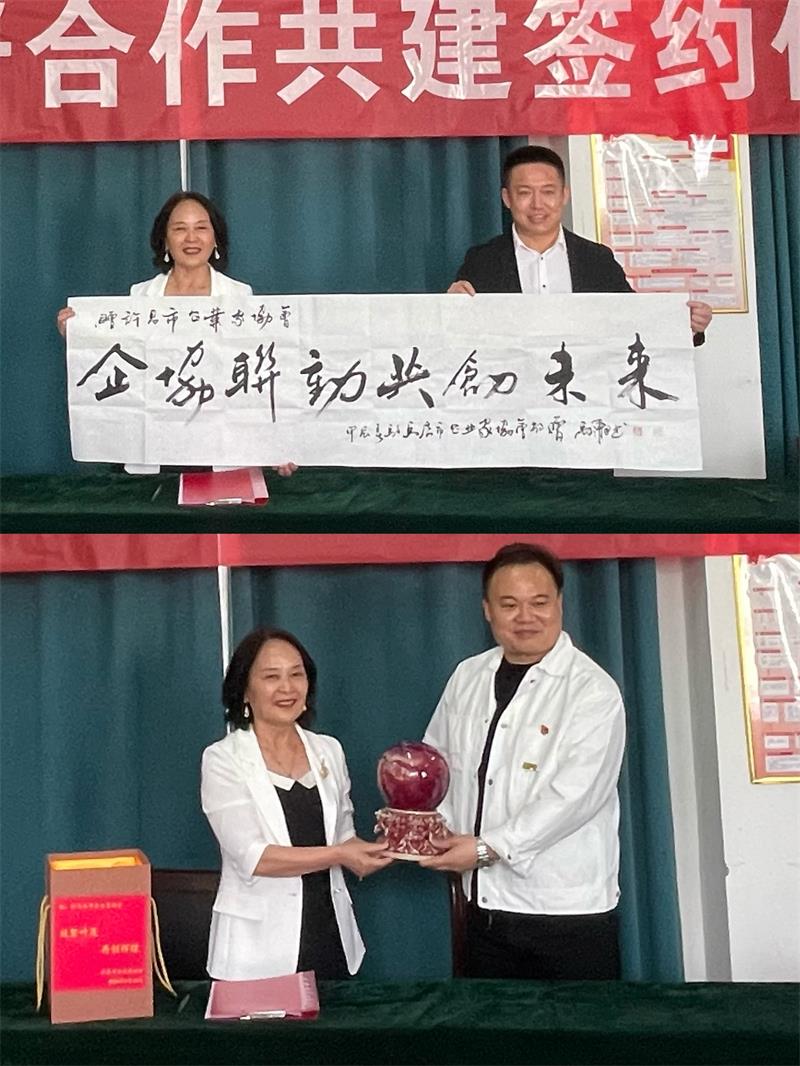 會上,駐馬店市工商聯(lián)副主席、市企業(yè)家協(xié)會黨委書記黨進(jìn)代表駐馬店市企協(xié)向許昌市企協(xié)贈送名家書法作品《企協(xié)聯(lián)動 共創(chuàng)未來》;黃玉霞秘書長代表許昌市企協(xié)向駐馬店市企協(xié)回贈由河南省工藝美術(shù)大師鈞瓷《財(cái)源滾滾》。一卷墨寶、一件珍品,藝術(shù)與古典交相輝映,傾注了兩地協(xié)會的溫暖情誼,同時也傳遞了雙方的美好祝福。