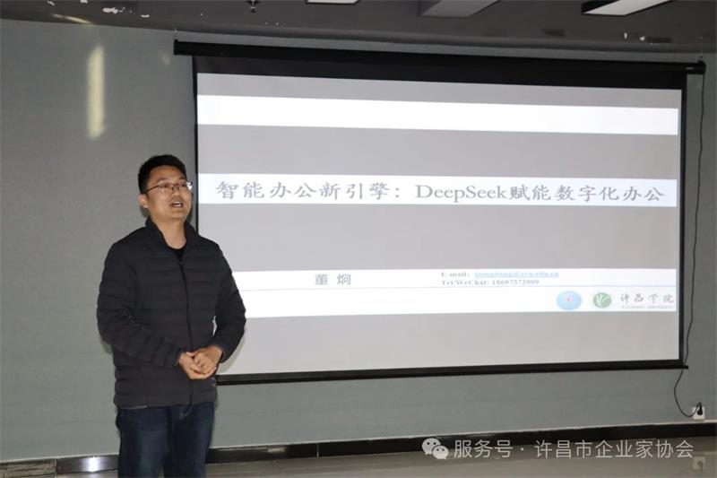 2月24日下午,許昌市企業(yè)家協(xié)會邀請許昌學(xué)院副教授、董炯博士,為協(xié)會會員帶來了一場關(guān)于DeepSeek的精彩講座。本次活動旨在幫助企業(yè)了解人工智能前沿技術(shù),把握行業(yè)發(fā)展趨勢,提升企業(yè)數(shù)字化轉(zhuǎn)型能力。