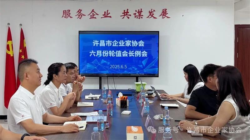 6月5日下午,許昌市企業(yè)家協(xié)會六月份輪值會長例會在協(xié)會會議室順利召開。本次會議由雙國商標(biāo)事務(wù)所李偉平主持,輪值會長團(tuán)隊、新入會企業(yè)家及秘書處工作人員共同參會,會議內(nèi)容豐富,氛圍熱烈。